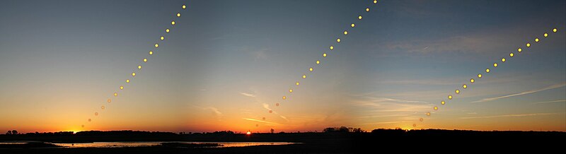 An observer noticing the sunrise point of the eastern horizon will notice the point oscillate between north-east in the summer to south-east in the winter and back to north-east in the summer - much like a swing.